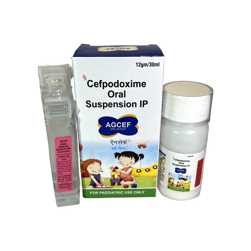 Reconstitute the dry syrup with the provided sterile water up to the marked line.