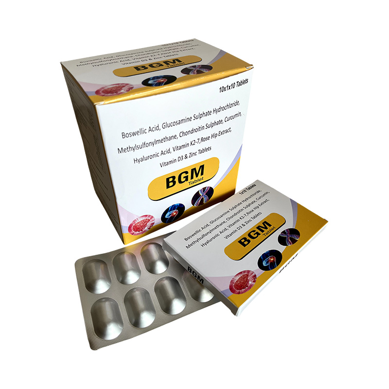 Boswellic Acid 200mg + Glucosamine 750mg + MSM 200mg + Chondroitin 100mg + Curcumin 50mg + Hyaluronic Acid 10mg + K27 22.5 mcg + Rose Hip Extract 100mg + D3 10mcg + Zinc 7.5 mg